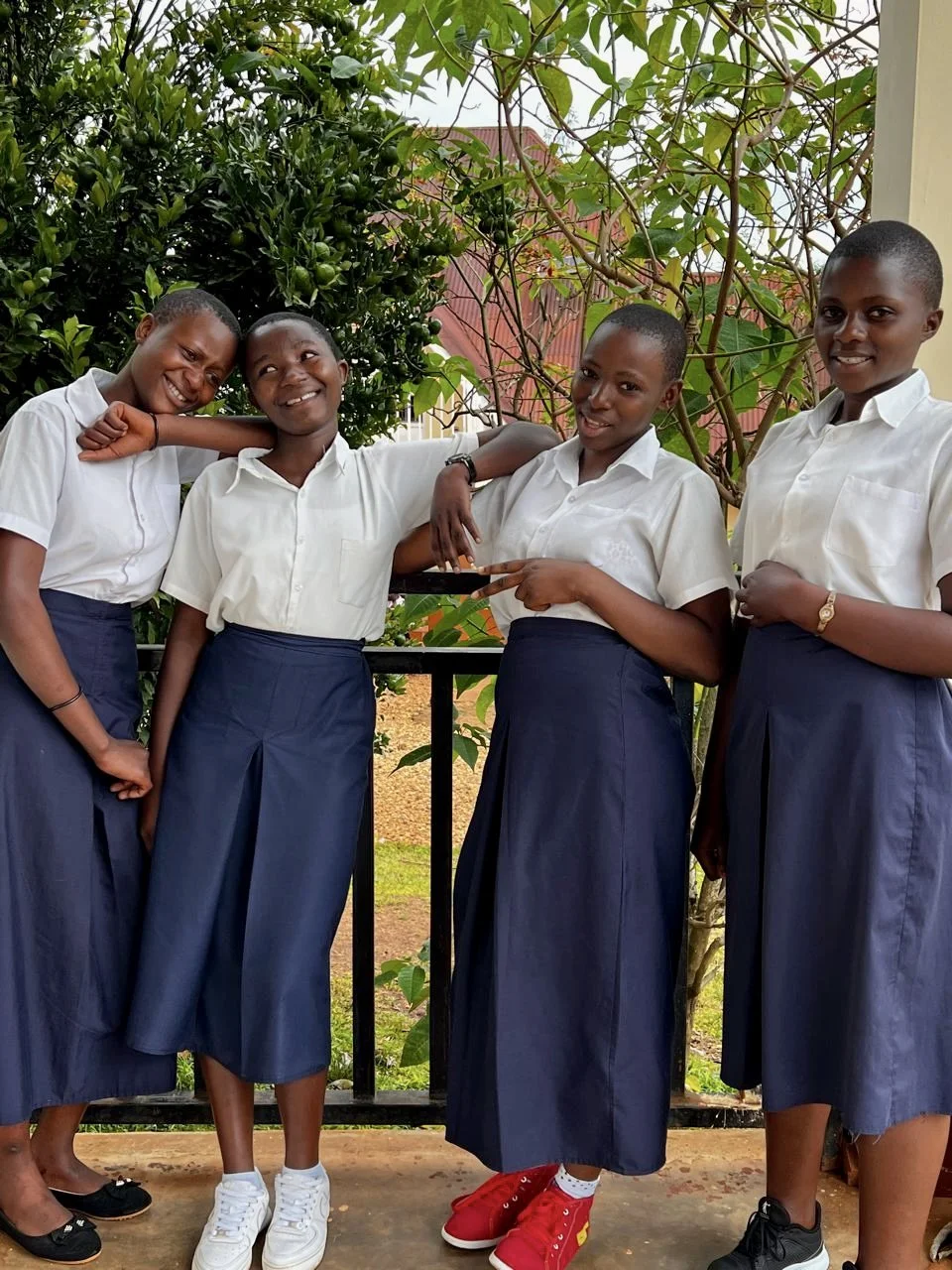 Denise Bora was also part of the Education Assistance program, and is now a brilliant high school graduate. She is pictured here alongside her fellow classmates, from left to right: Denise Bora (70%), Nzigire Pascaline (70%), Cynthia Hamuli (she graduated last year) and Ciragane Bitakuya Divine (75%).